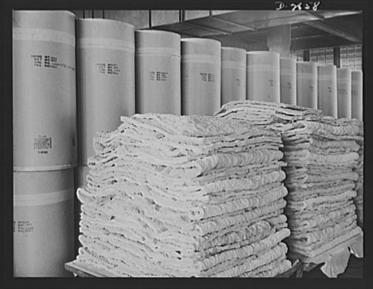 Synthetic rubber (Ameripol). This is finished synthetic rubber, ready for shipment in large paper drums holding 200 pounds each. It is about to leave the Akron, Ohio synthetic rubber plant of the B. F. Goodrich Company