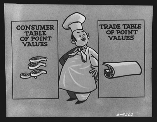 Consumers, of course, usually buy rationed items in the form described in the consumer table and use points accordingly. But if a consumer wishes to buy an item in the larger form described in the trade table, he may do so. In that case he pays points on the basis of the trade table