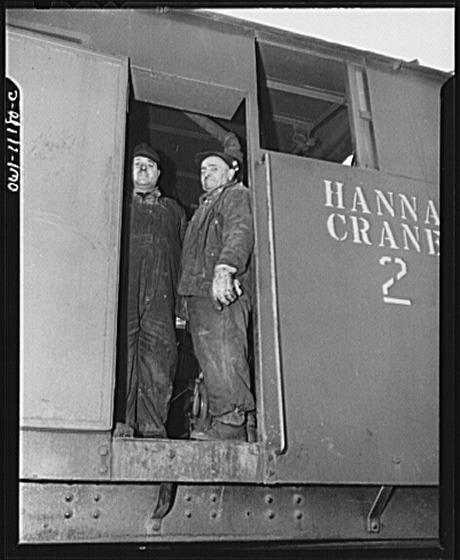 Hanna furnaces of the Great Lakes Steel Corporation. Detroit, Michigan. Crane operators