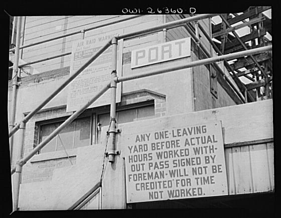 Bethlehem-Fairfield shipyards, Baltimore, Maryland. Signs on shipways