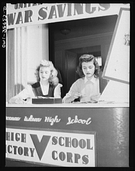 Washington, D.C. Defense stamps are on sale every morning at this stand in the hall at Woodrow Wilson High School