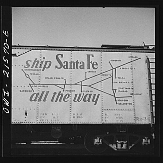 San Bernardino, California. A car of the Atchison, Topeka and Santa Fe Railroad