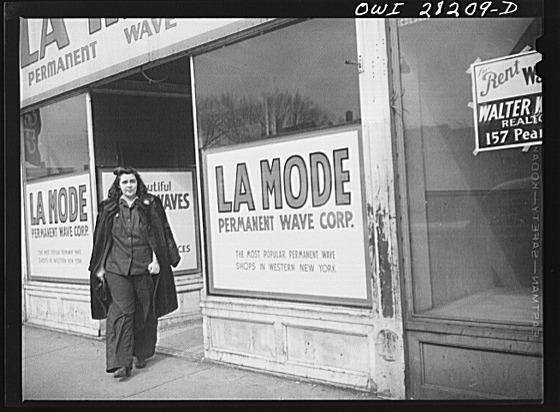 Buffalo, New York. Mrs. Grimm, a twenty-six year old widow with six children who is a crane operator at Pratt and Letchworth, occasionally has her hair done after work