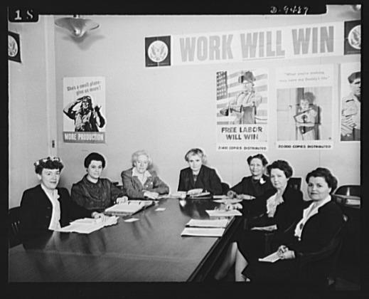 War Production Board poster. Poster distributed by the WPB to war plants. The original is 28 1/2 inches by 40 inches and is printed in black and yellow. It was reproduced from a photograph by Alfred T. Palmer, Office of War Information (OWI) staff photographer. Copies may be obtained from War Production Drive Headquarters, War Production Board, Washington, D.C.