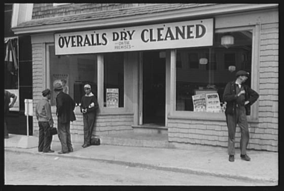 Workers lounging around town and waiting for a lift home at afternoon change of shift of Electric Boat Works, Groton, Connecticut