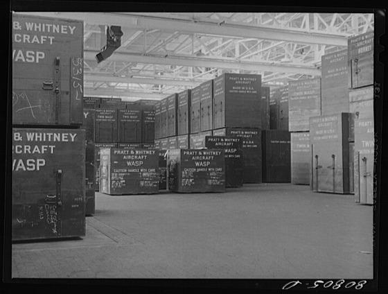 Crated engines. Pratt and Whitney Aircraft Corporation. East Hartford, Connecticut