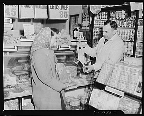 Provincetown, Massachusetts. Mrs. John Russe shopping in a Portuguese store