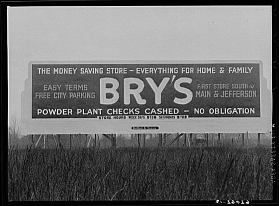 Advertisement of department store on road into Memphis from Millington, Tennessee, where powder plant is under construction