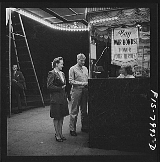 Washington, D.C. Sergeant George Camblair taking his girlfriend to the movies while he is at home on a weekend furlough
