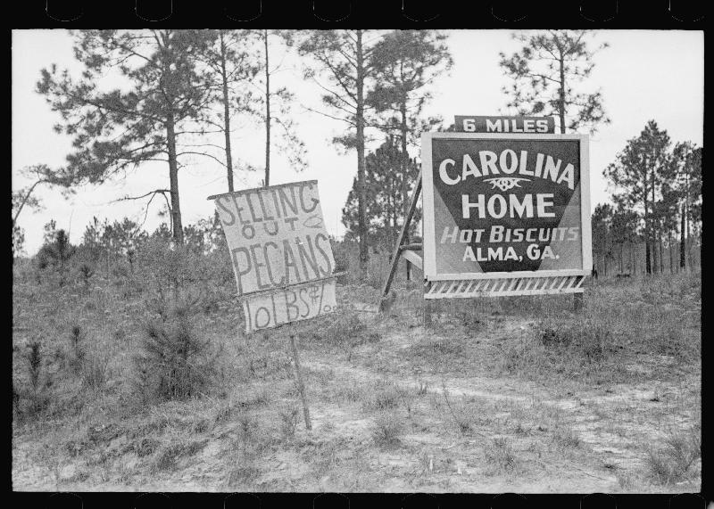 Road sign near pecan stand, Alma, Georgia