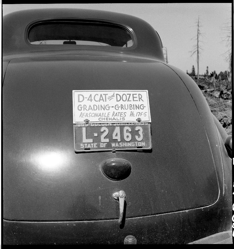 Bulldozer contractor's car. Western Washington, Lewis County, near Vader