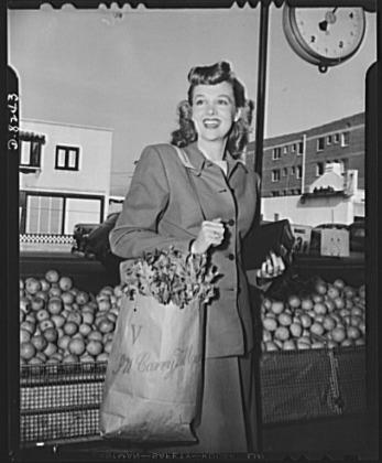 "I'll carry mine." Betty Jane Rhodes, popular Paramount Pictures star, shops and carries her own parcels, patriotically cooperating with the "I'll Carry Mine" Campaign, sponsored by the Office of Defense Transportation to save vital delivery equipment for essential war uses