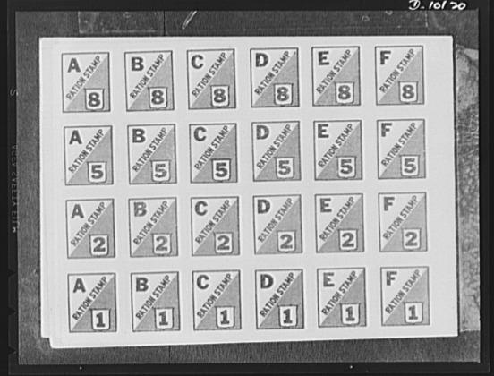 War ration book no. 3. This new ration book, replacement for present books when their stamps are used up, will be distributed during the early summer. It contains four pages of "point" stamps, similar to the point stamps in war ration book 2, though slightly different in design and printed in brown ink. It also contains four pages of "unit" stamps for the type of rationing now used for sugar, coffee, and shoes. Each page of forty-eight stamps bears the design of a different war machine, including guns, tanks, aircraft carriers and planes