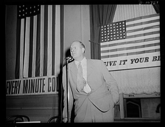 Alex G. Nordholm, Chief, Regional Service, War Production Drive Headquarters, speaking before labor-management committee members at Hazleton, July 30th