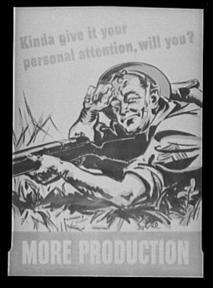 World War II is the tone of tension imbued with freedom. Fundamental to Americans' sense of themselves as individuals, and as a nation, is the idea of freedom. This central term in American vocabulary is deeply embedded in the documentary record of the nation's history, language, and everyday life. In 1941, Roosevelt famously defined the elusive word in his Four Freedoms speech, where he proposed that people "everywhere in the world" ought to enjoy freedom of speech, freedom of worship, freedom from want, and freedom from fear. It was also during the very same year that the Japanese made a surprise attack on Pearl Harbor, an event which officially catapulted the United States into World War II. To the American people, December 7th, 1941 is a date, which lives in infamy, for better and for worse. The idea of freedom supported Americans, both overseas and on the homefront, throughout the duration of the war. In their righteous might, the people triumphed over all adversity, and saw their efforts through to absolute victory, conquering their wartime foes for the cause of freedom. World War II is a place of tension and uncertainty, where the dissolution of preordained notions of everyday life serve as salient reminders of war's unexplained nature. In a world ravaged by oppression, World War II is a place which embodies the Four Freedoms, where The Everyday is colored by a booming war economy, price controls, war bond drives, victory gardens, rationing, the rise of women in the labor force, and unswerving acts of courage under pressure. We give thanks to the Government's nationwide propaganda campaign, and especially the Farm Security Administration and Office of War Information, for popularizing and documenting the war effort, on the homefront.