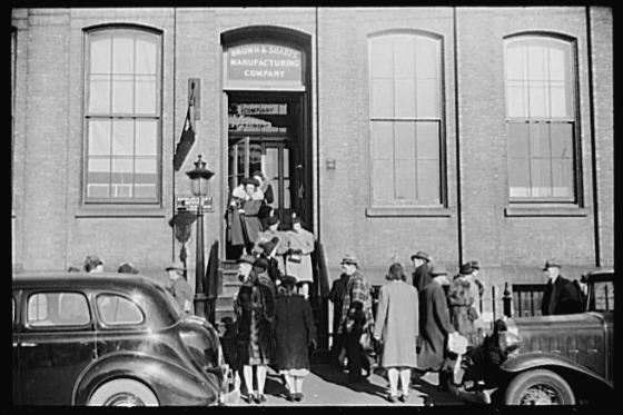 Employees leaving Brown and Sharpe Manufacturing Company, Providence, Rhode Island