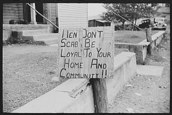 Picket's sign outside copper mine during strike. Ducktown, Tennessee