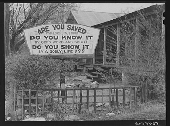 Religious sign in front of house on highway between Columbus and Augusta, Georgia. Similar religious signs were placed along this highway at intervals of at least a mile and often much closer together