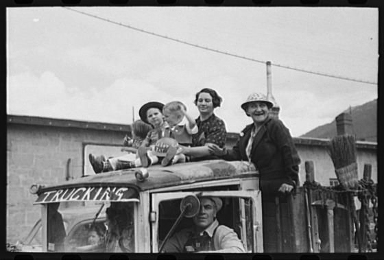 Miner's family on top of truck watching Labor Day contests, Silverton, Colorado