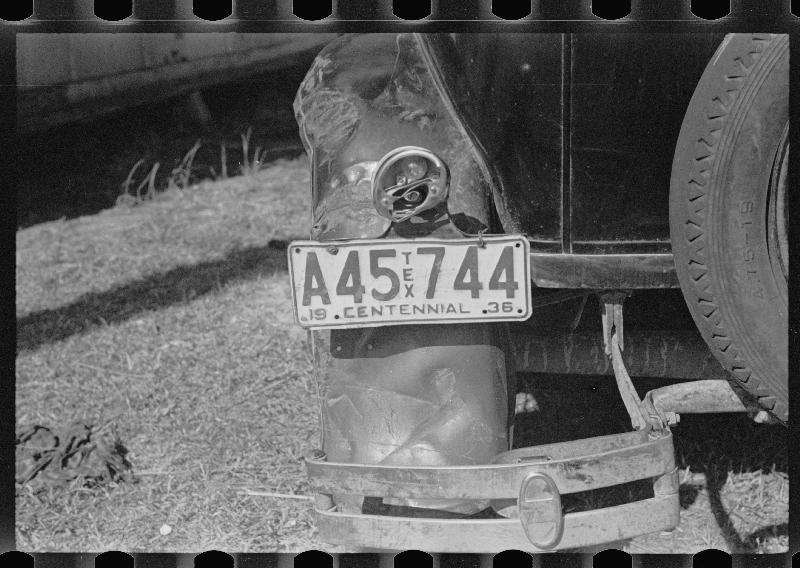 The battered rear of a migrant citrus worker's car. Winter Haven, Florida