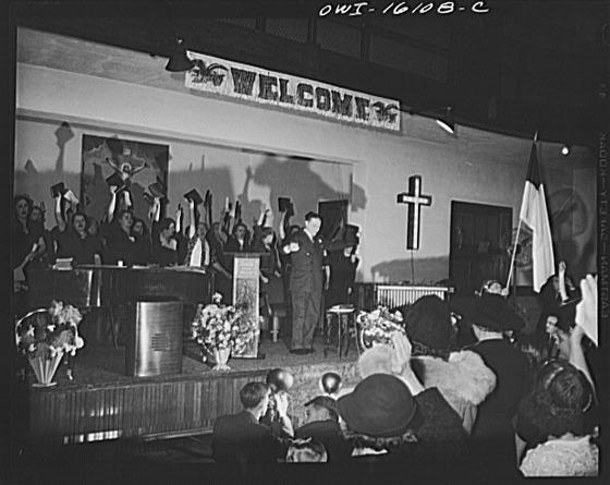 Toledo, Ohio. Evangelical church ceremony at which the preacher delivered a hysterical speech, and then burned a copy of Hitler's Mein Kampf