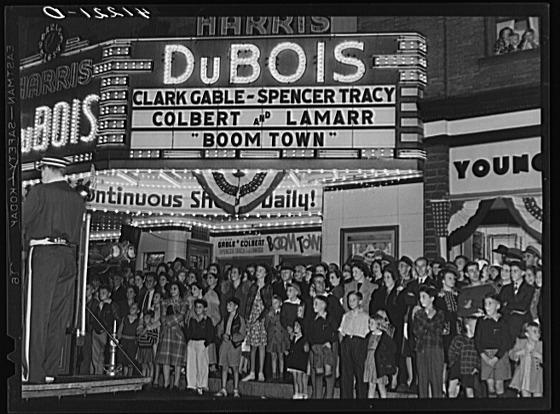 Spectators and theatre at labor day parade in Du Bois, Pennsylvania